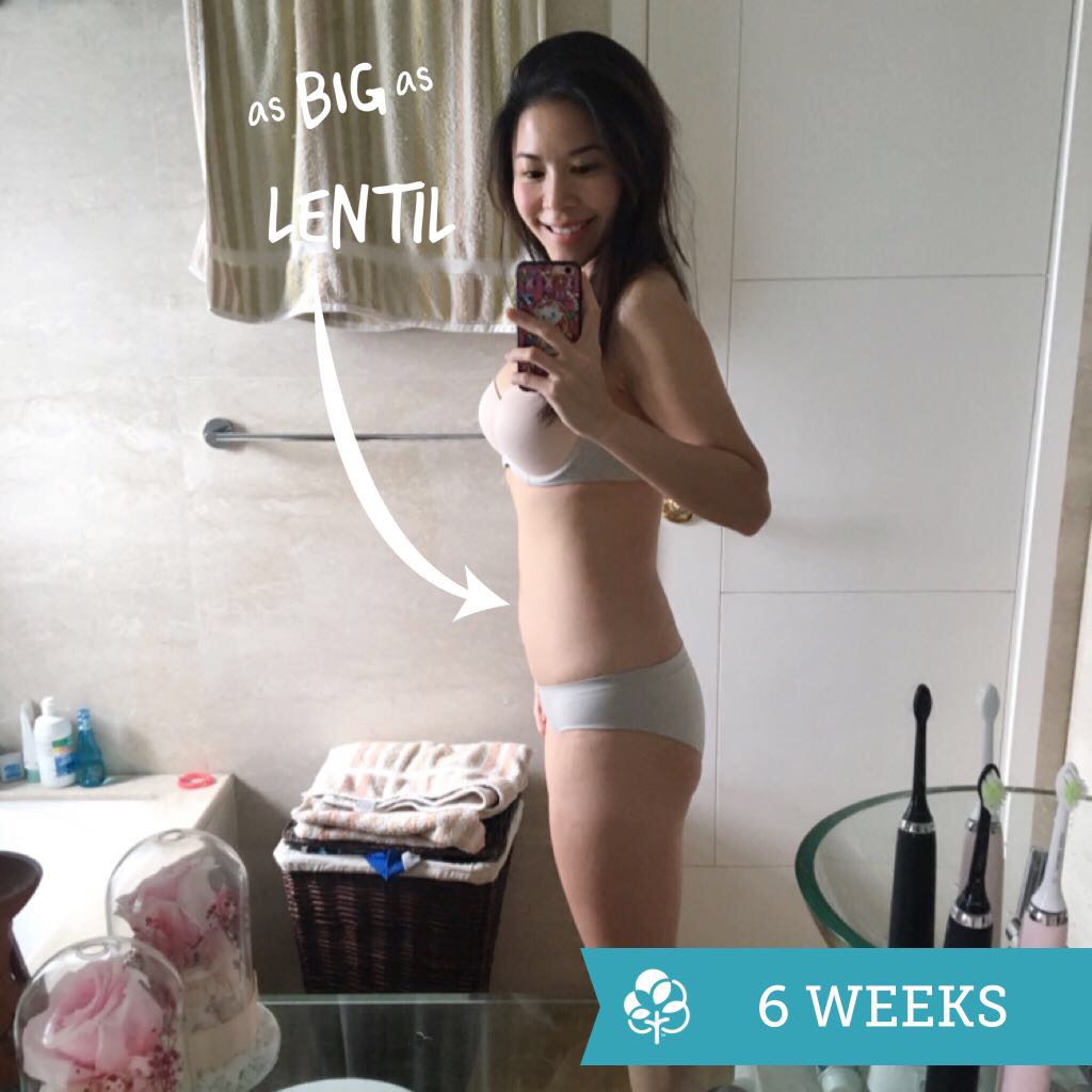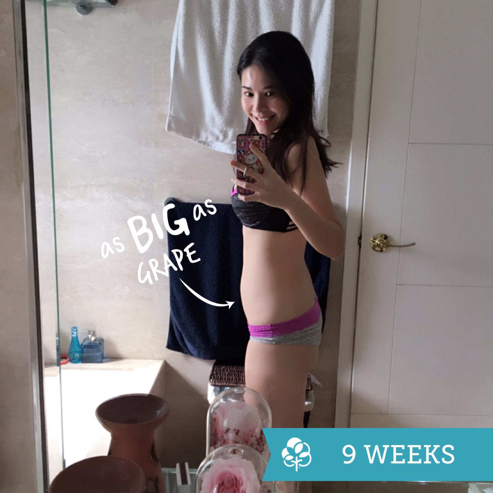 We first discovered about this little development in my womb on 11 August 2017, Friday. I remember testing myself at home because my period was a little late and we were going to meet friends for dinner and drinks that weekend. So, I got myself tested to just in case I’m pregnant and I should immediately stop my alcohol intake. To my surprise, the test came out positive! I didn’t really think it would turn positive as I didn’t experience any obvious symptoms other than my usual PMS ones like swollen boobs, water retention and a thicker belly from the thickening of the uterus wall before every period. I was 5 weeks pregnant. This is me at 5 weeks:
