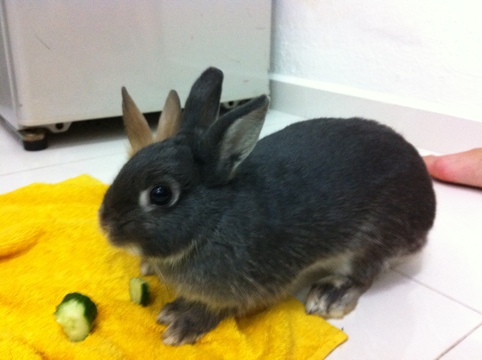 My friend’s bunny Monster (charcoal colored one) will be up for the prize of Best Breed tomorrow at Suntec City Tower 1, 2-5pm. If u happen to be in the area do go down and support this cute li’l bunny!